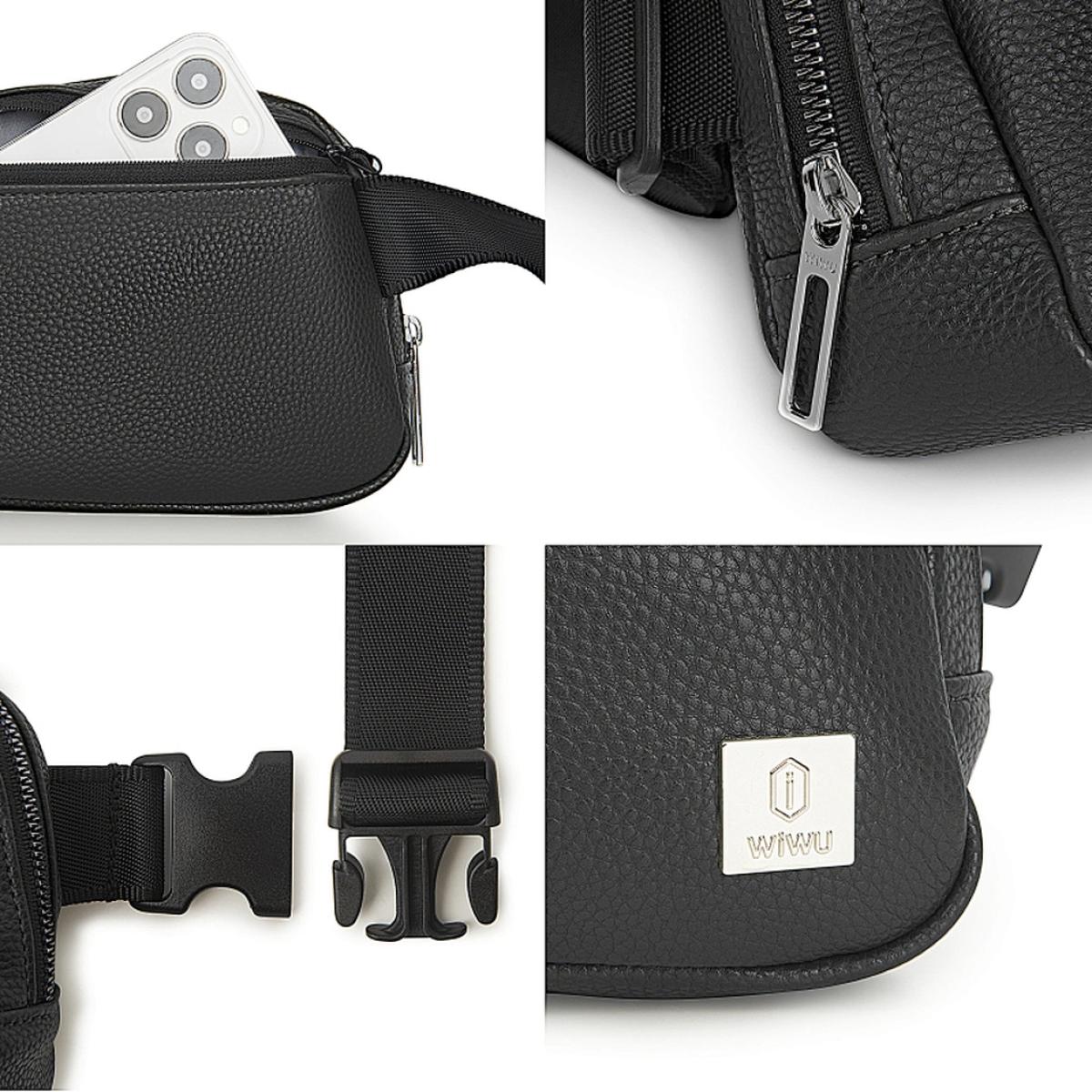 WiWU Lulu Crossbody Bag – Unisex sling pouch made of PU leather and nylon, lightweight (260g) with multiple pockets for daily essentials.
